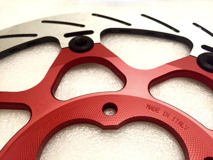 Alth floating brake rotors, available with your choice of a rounded, or wave cut rotor blade, and your choice of color for the rotor carrier, and the buttons!